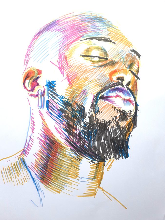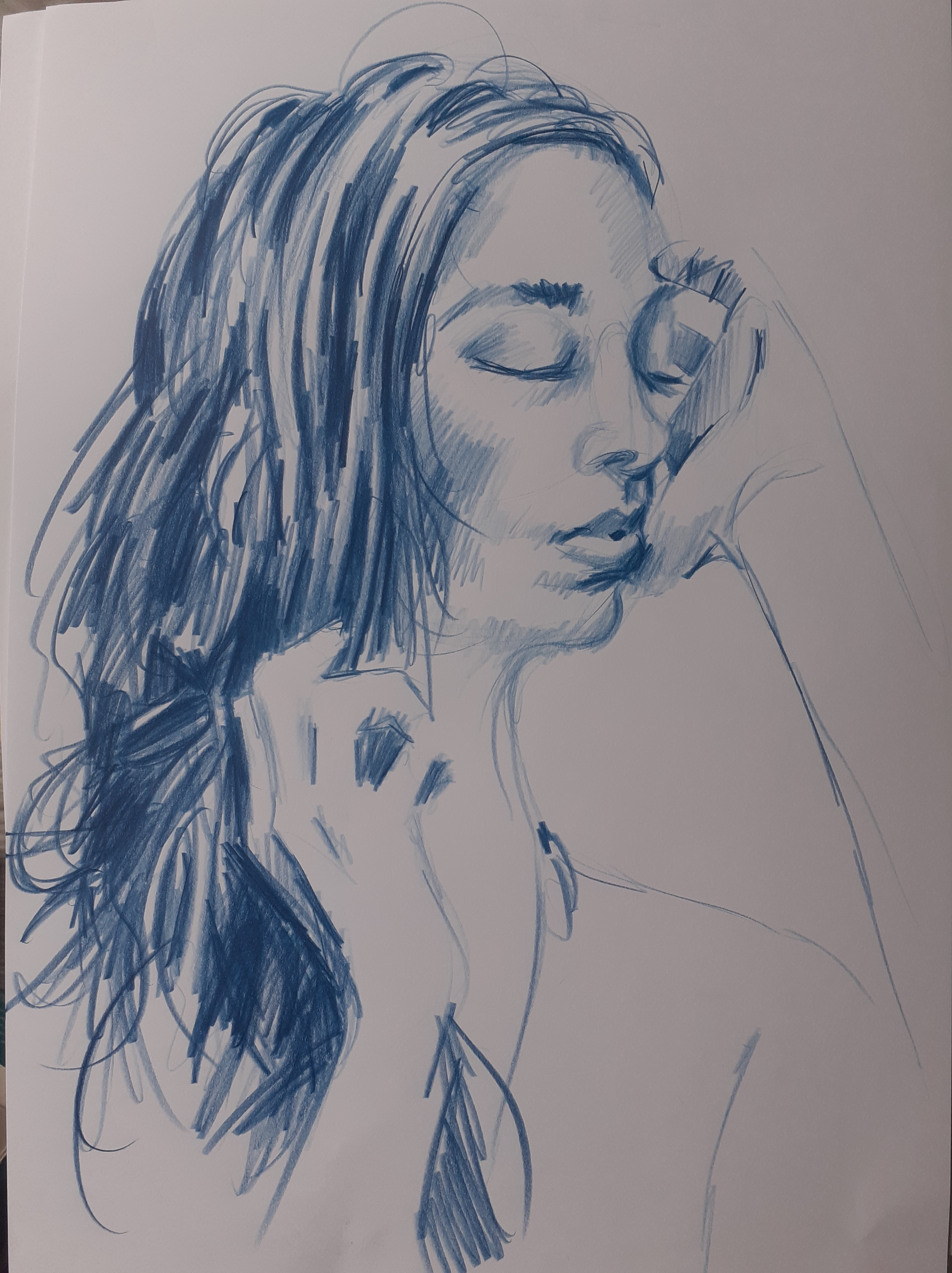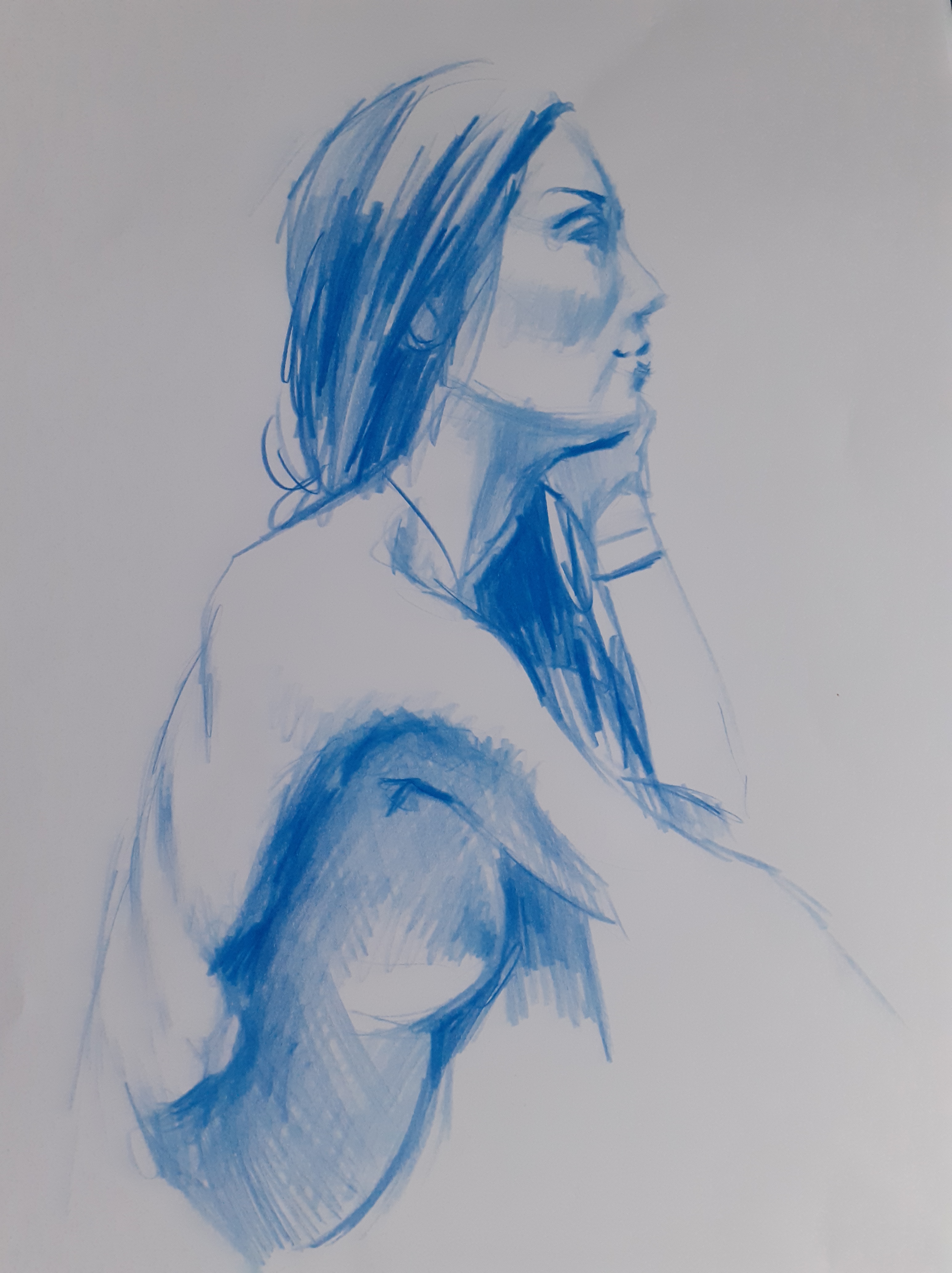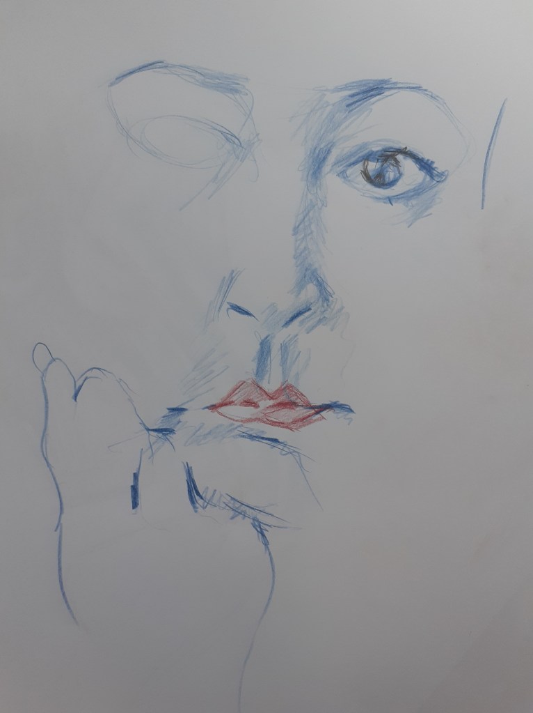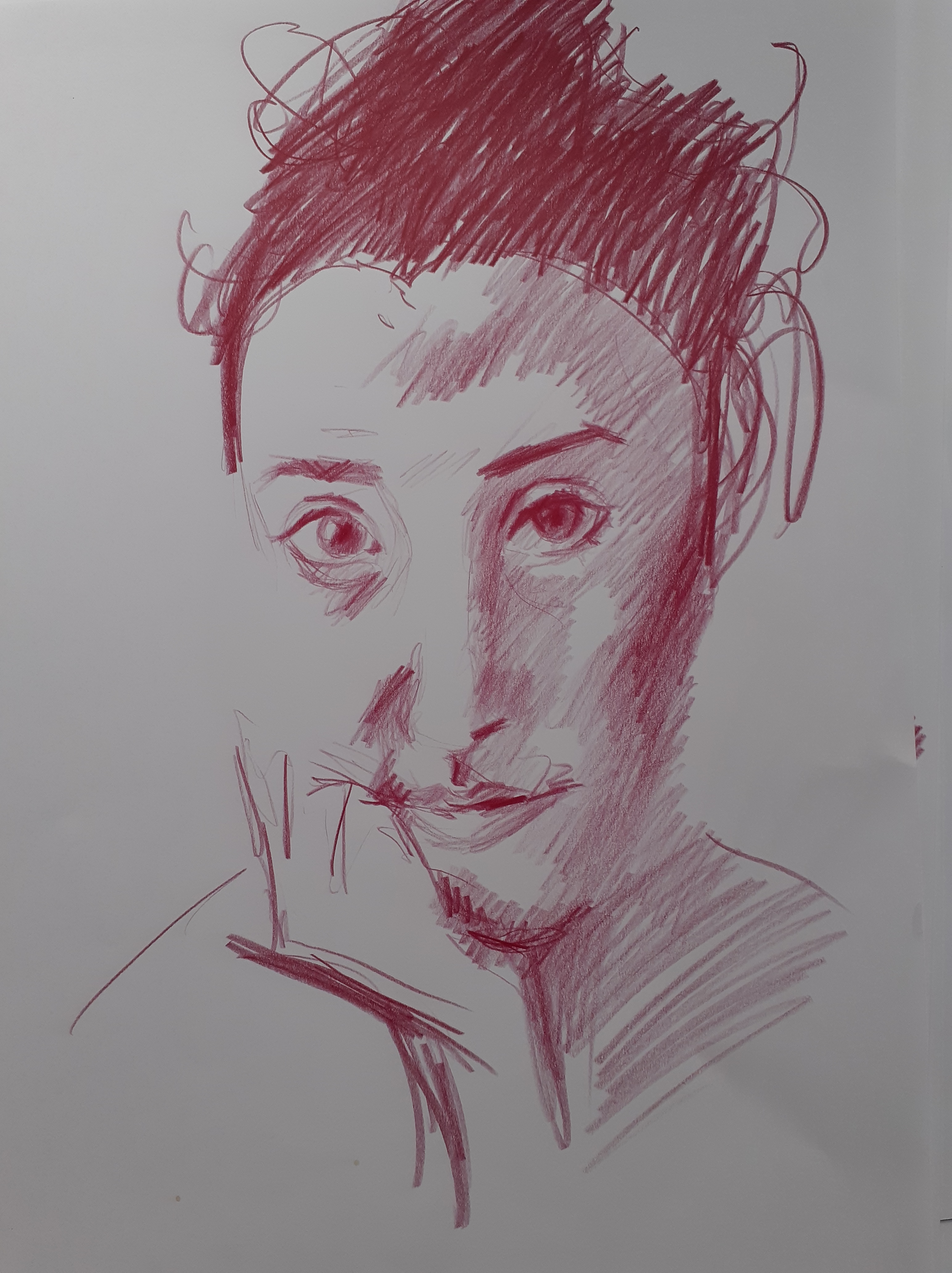 I have largely found my own way of getting a half-decent likeness through trial and error – a lot of error – and I’m not sure I’d be able to express any secret of it at this time in my career. Is it about getting the mouth right – often a source of problems for any of us who have drawn other humans? Is it the nose or shape of face or the relationship between all of these parts which you must create in proportion to one another in order to achieve a likeness? Who knows but thanks to a lot of online sessions now, some of which are free, you can practice drawing people without any stress and if you don’t get a likeness, move on to the next face. I embraced this online sketching with fervour during the lockdowns and afterwards and I hope to continue doing so into the future because there’s an indescribable feeling of gratitude to the universe when a face you draw tends to look like the person.